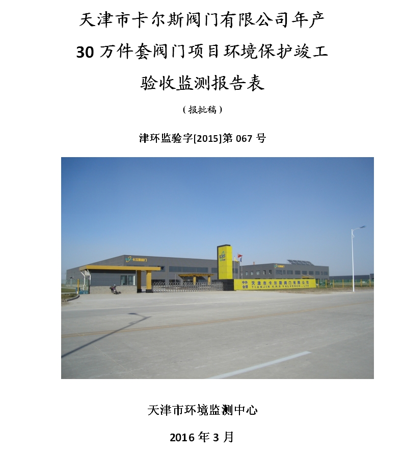 天津市卡爾斯閥門(mén)有限公司環(huán)境保護(hù)竣工驗(yàn)收公示